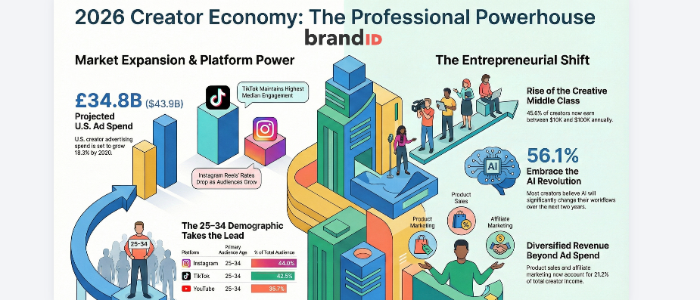 This evolution is fundamentally fueled by a crisis of relevance in legacy entertainment. Today, 56% of Gen Z find creator content more relevant than traditional film or television. Brands have responded by voting with their capital: U.S. creator ad spend is projected to hit $43.9 billion in 2026, an 18.3% increase from the prior year. As creators pivot from individual sharing to owning intellectual property and functioning as CEOs, they are no longer just participating in the economy; they are the architects of its new rules.